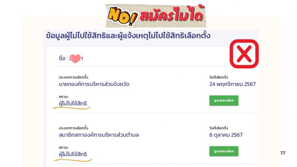 ตรวจสอบการถูกจำกัดสิทธิสมัคร 2 ปี ซึ่งเป็นลักษณะต้องห้ามตามมาตรา 50(20)