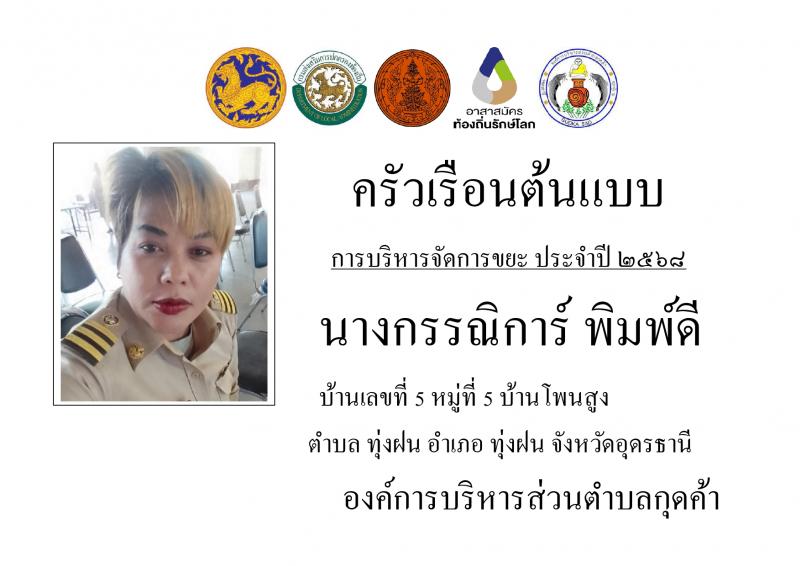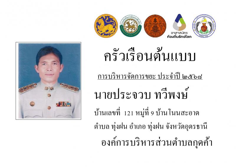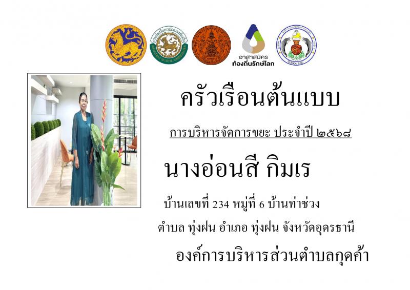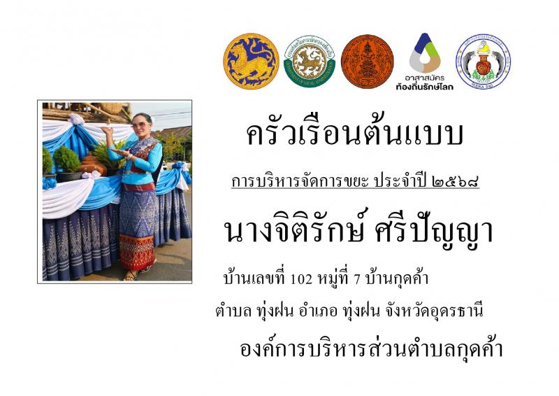 องค์การบริหารส่วนตำบลกุดค้ายกย่องเชิดชูเกียรติให้เป็นครัวเรือนต้นแบบ การบริหารจัดการขยะ ประจำปี ๒๕๖๘