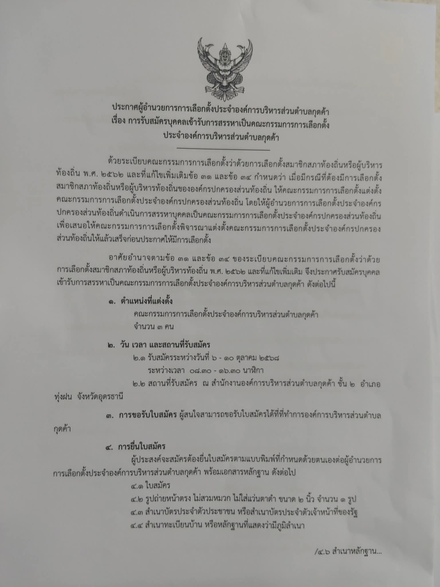ชื่อเรื่อง : การรับสมัครบุคคลเข้ารับการสรรหาเป็นคณะกรรมการการเลือกตั้งประจำองค์การบริหารส่วนตำบลกุดค้า