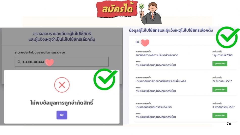 ตรวจสอบการถูกจำกัดสิทธิสมัคร 2 ปี ซึ่งเป็นลักษณะต้องห้ามตามมาตรา 50(20)
