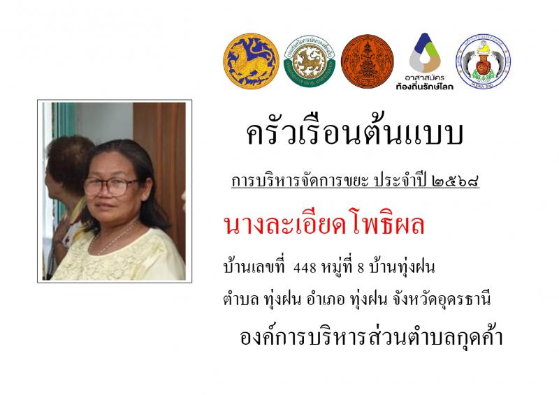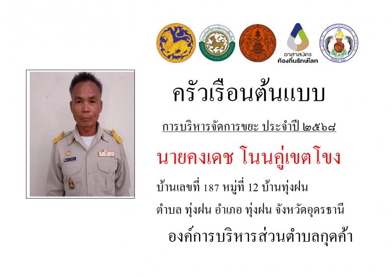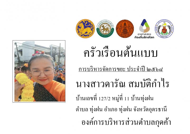 องค์การบริหารส่วนตำบลกุดค้ายกย่องเชิดชูเกียรติให้เป็นครัวเรือนต้นแบบ การบริหารจัดการขยะ ประจำปี ๒๕๖๘