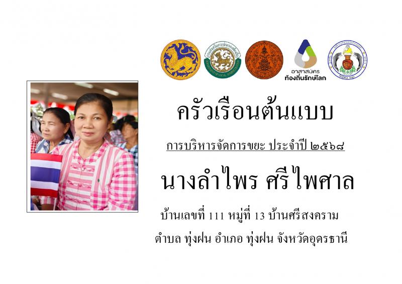 ครัวเรือนต้นแบบ การบริหารจัดการขยะ ประจำปี ๒๕๖๘