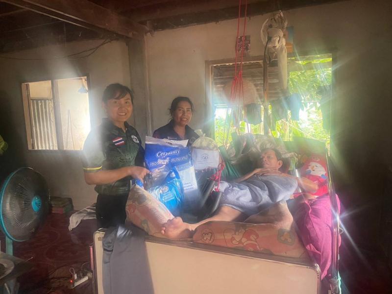 และได้มอบผ้าอ้อมสำหรับผู้ใหญ่ สิ่งของเครื่องใช้ และเงินจำนวนคนละ 100 บาท