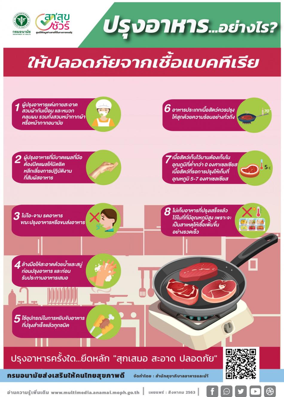ประชาสัมพันธ์กรมอนามัยส่งเสริมให้คนไทยสุขภาพดี "ปรุงอาหาร......อย่างไร? ให้ปลอดภัยจากเชื้อแบคทีเรีย" [7 กุมภาพันธ์ 2566]