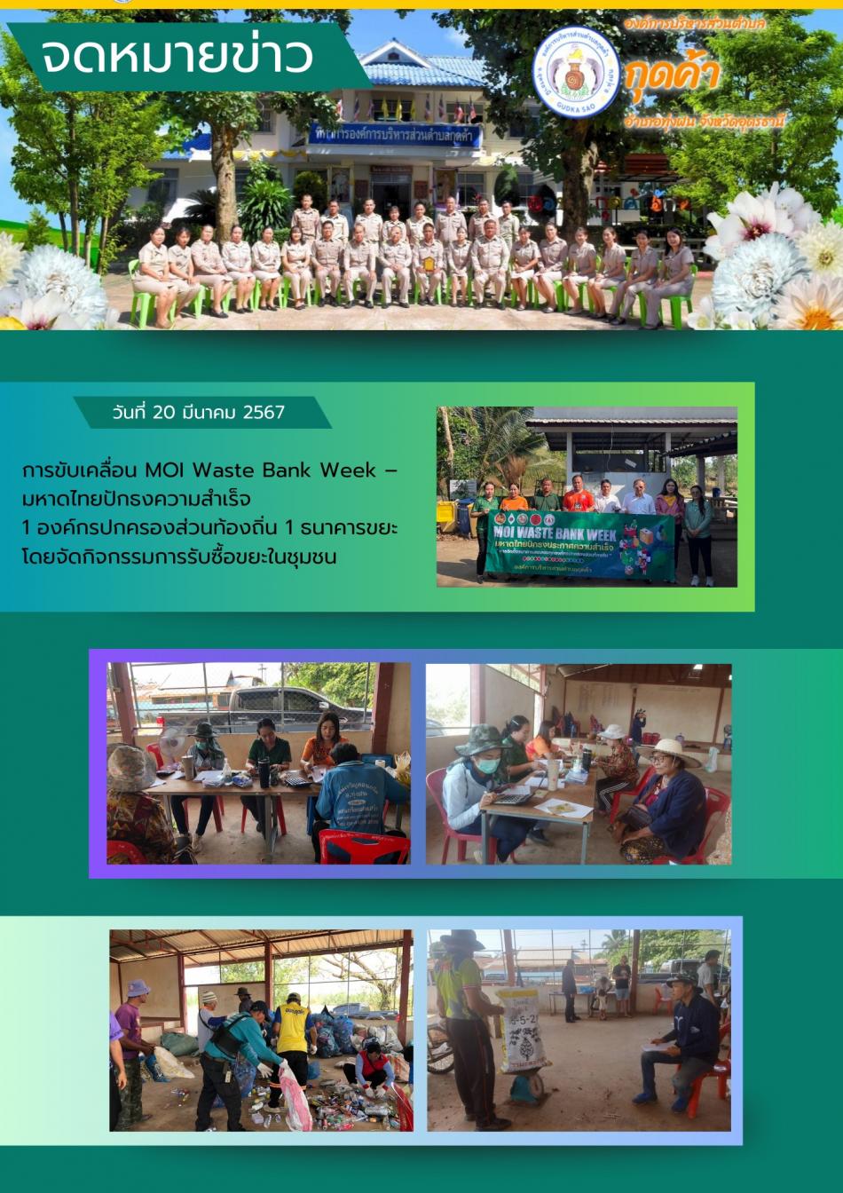 ประชาสัมพันธ์ กิจกรรม "MOI Waste Bank Week - มหาดไทยปักธงความสำเร็จ หรือ 1 องค์กรปกครองส่วนท้องถิ่น 1 ธนาคารขยะ [20 มีนาคม 2567]