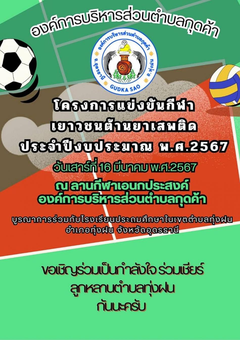 ประชาสัมพันธ์ "โครงการการแข่งขันกีฬาเยาวชน และประชาชนต้านยาเสพติด ประจำปีงบประมาณ พ.ศ.2567" [15 มีนาคม 2567]