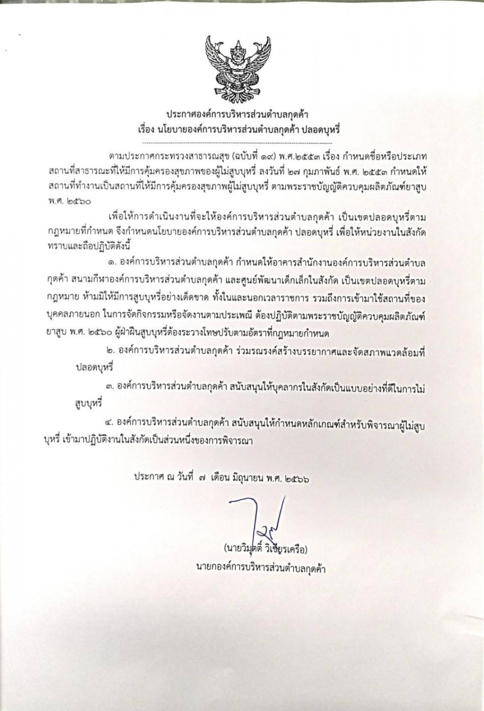 ประกาศองค์การบริหารส่วนตำบลกุดค้า เรื่อง นโยบายองค์การบริหารส่วนตำบลกุดค้าปลอดบุหรี่ [7 มิถุนายน 2566]