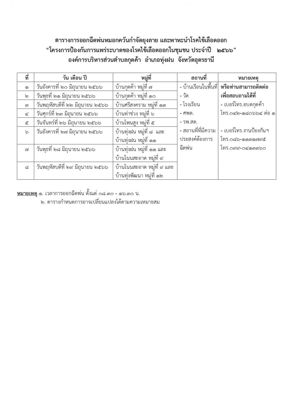 ประชาสัมพันธ์การร่วมรณรงค์ป้องกันการเกิดโรคไข้เลือดออกในชุมชน องค์การบริหารส่วนตำบลกุดค้า อำเภอทุ่งฝน จังหวัดอุดรธานี [21 มิถุนายน 2566]